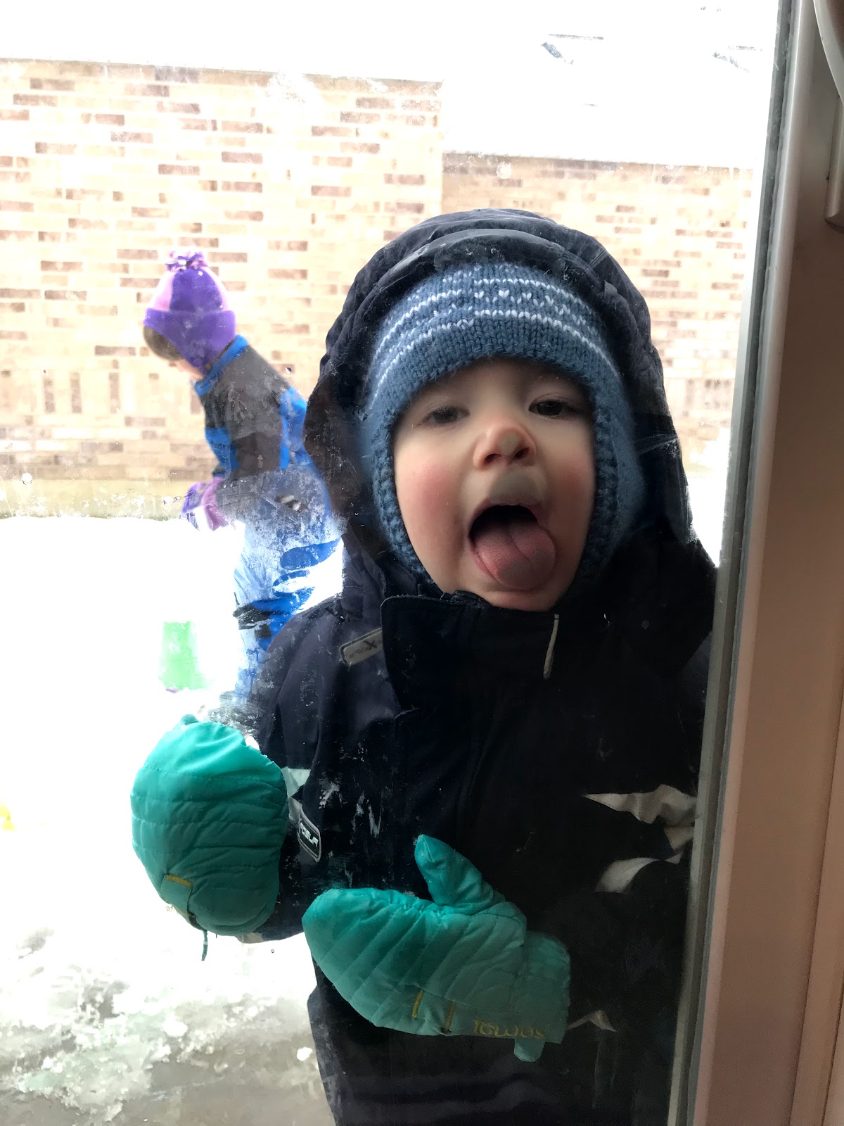 The kids have loved playing in the snow this winter. The first big snow in January they went out to play while I stayed inside. I looked out a little later and they had rolled three huge balls of snow. I don't even know how they got them so big. I bet they were way heavy. But they worked hard and did it. They have had lots of fun in the snow. I am glad we got them some snow gear for this year.